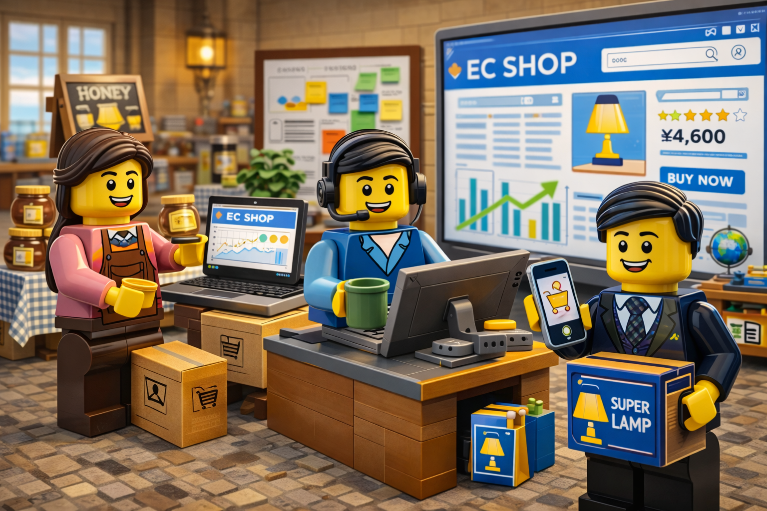 ECサイト立ち上げ、販売導線設計、商品登録、販売運用までトータル支援。